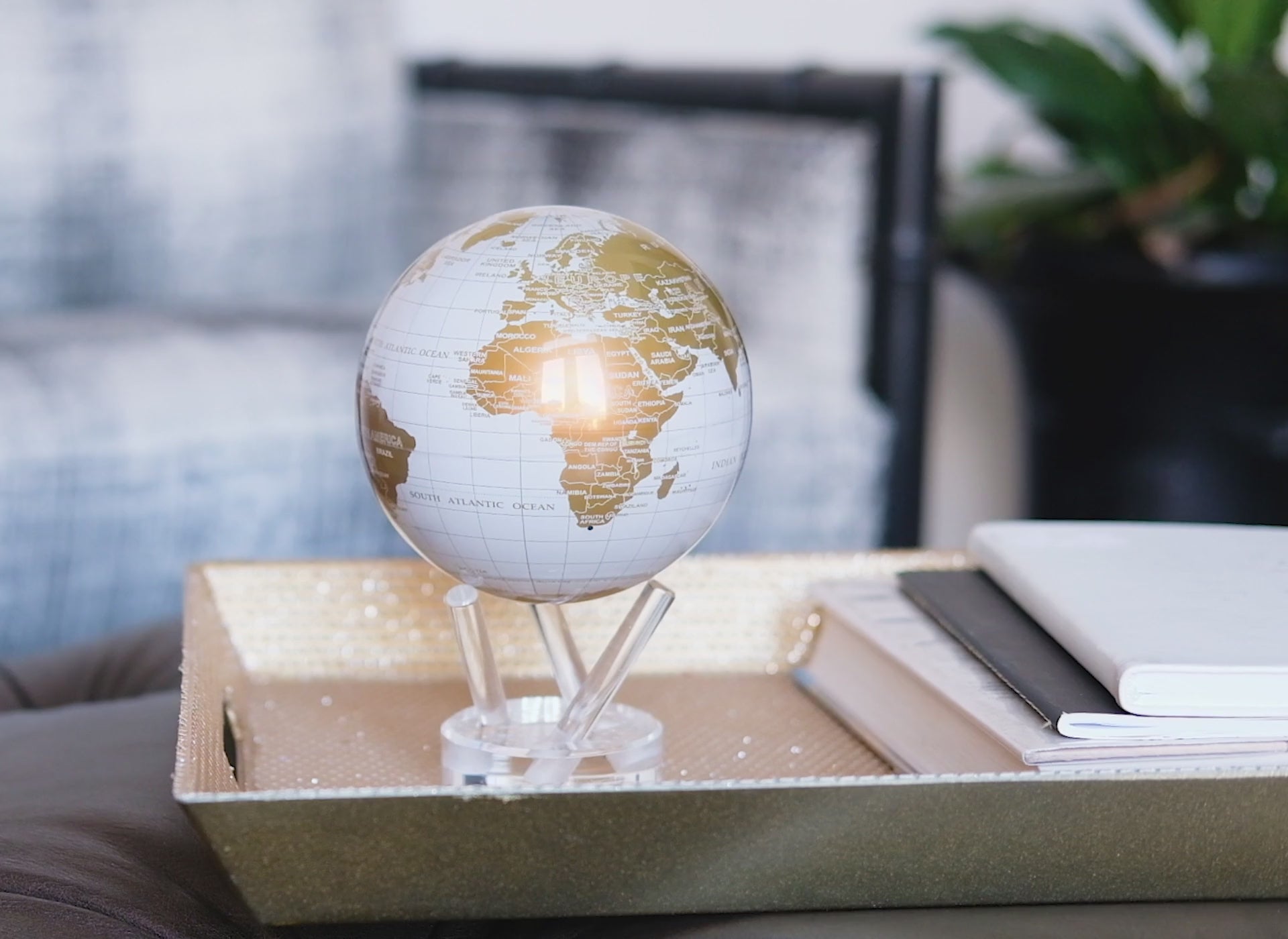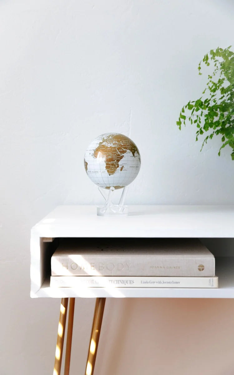 這款精緻的白色和金色地球儀設計在任何房間都看起來很棒,在光線照射下效果更佳。