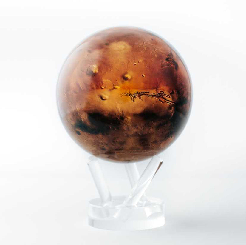 火星呈現出迷人的紅色,這是由其表面的生鏽塵埃造成的。這個火星球再現了每個隕石坑,以及構成其表面的多層紅色、棕色和棕褐色。我們的火星地球圖形是由 NASA 太空船拍攝的衛星影像,使其具有其他解釋無法找到的真實感。