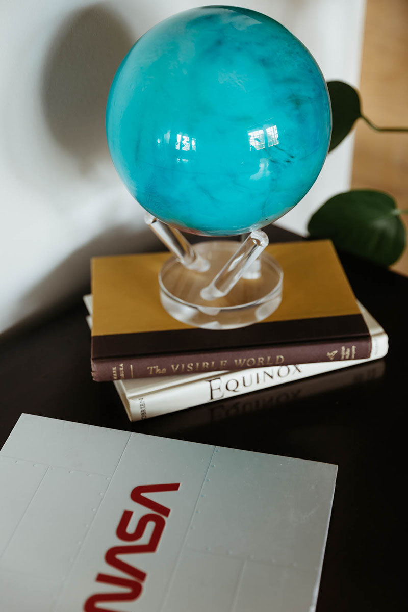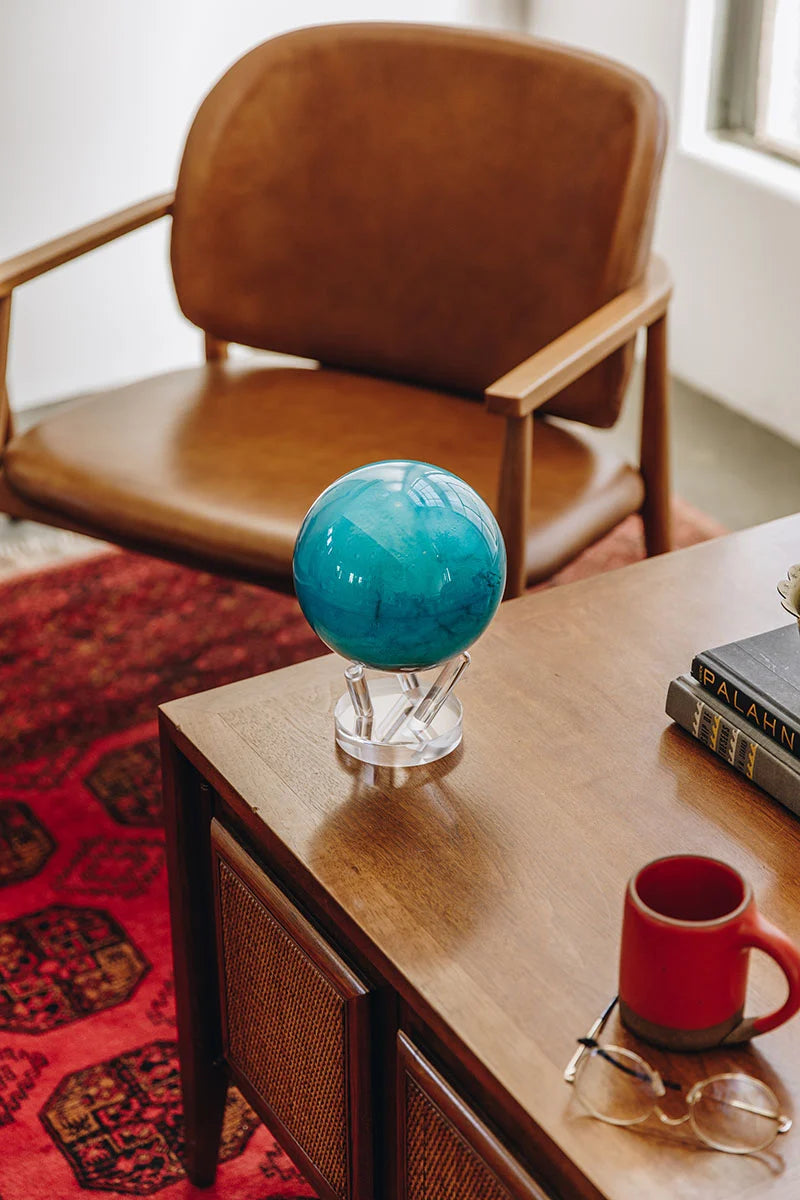 獲得土星第六大衛星的獨特的視角。透過紅外光觀察,土衛二 MOVA 地球儀沿著月球獨特的表面地形呈現出引人注目的藍色、粉紅色和紅色色調。