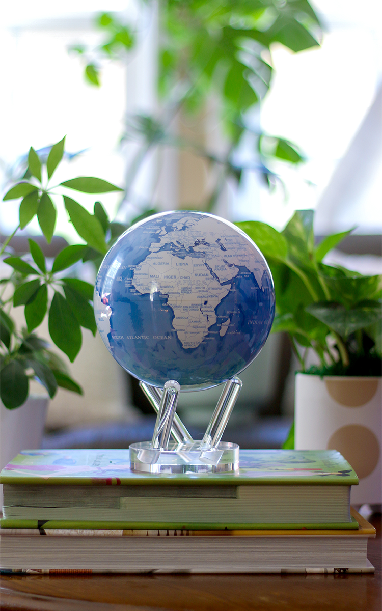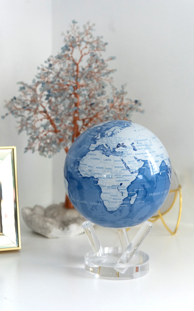 天藍色和白色 MOVA 地球儀