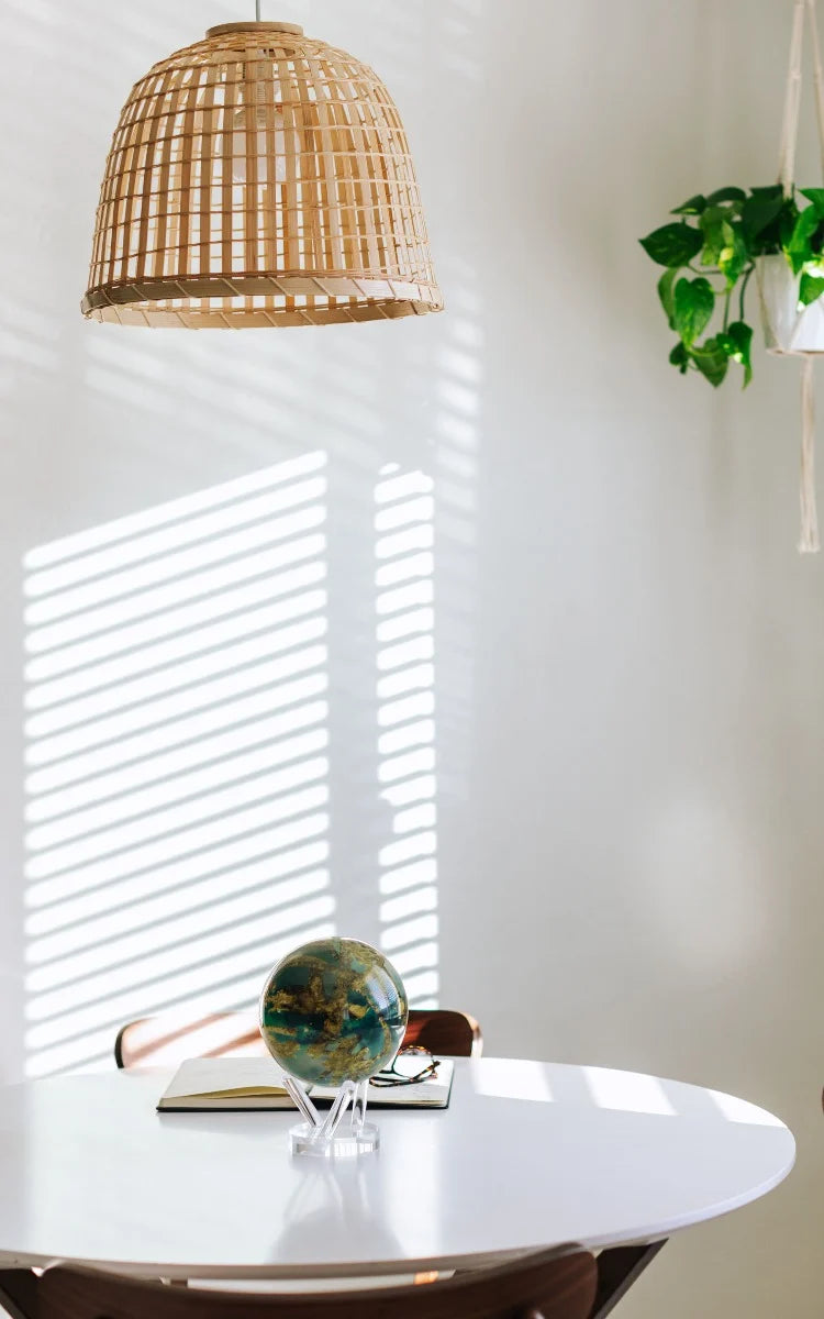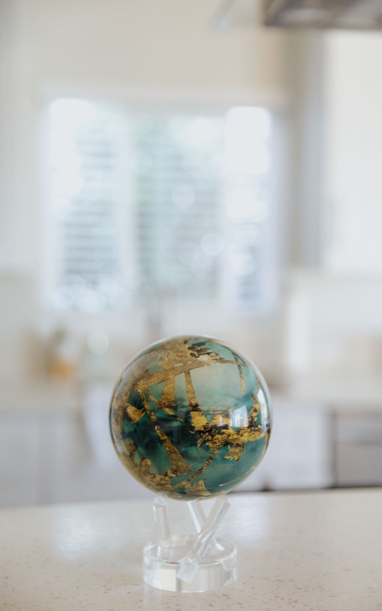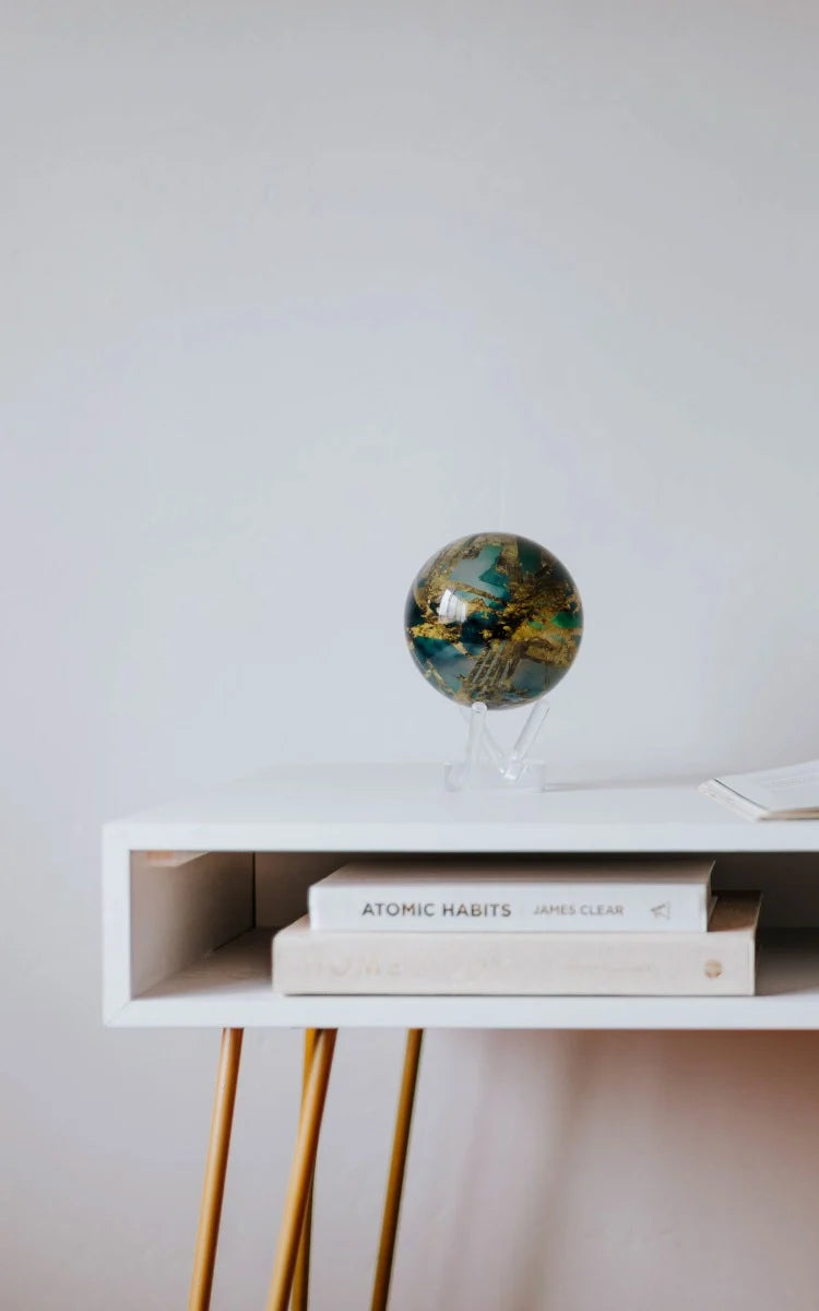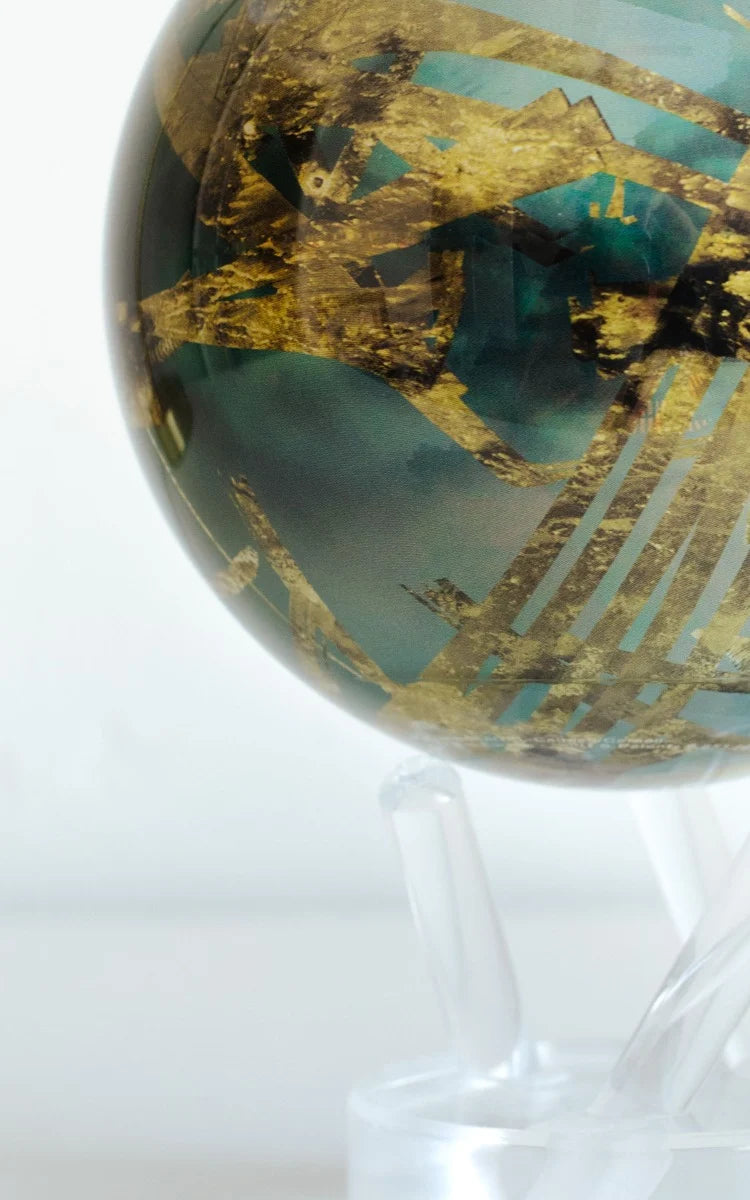 非常規但無可否認的優雅,這個地球儀描繪了金色、藍色和綠色的色調,真實地再現了土星最大的衛星泰坦。